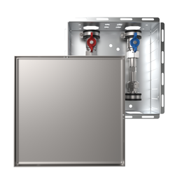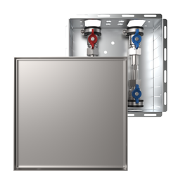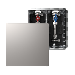 strawa Wasserstation W2-VA-D Typ A,BxHxT: 246 x 246 x 94 mm, Wasserzählervorbereitung Trinkwasser kalt und warm 3/4" Länge 80 mm, mit 1x DVGW-Kugelhahn 3/4", mit EPP-Dämmung, in Wandzarge mit Abdeckung Edelstahl