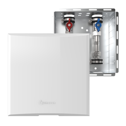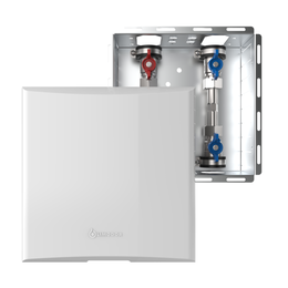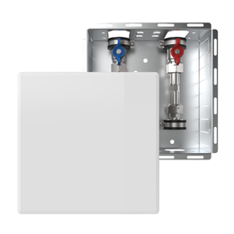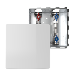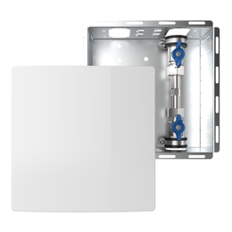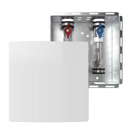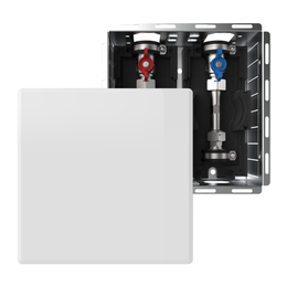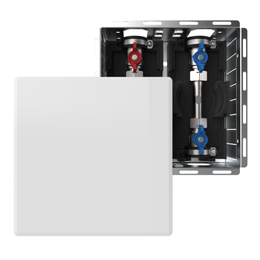 strawa Wasserstation W2-D,BxHxT: 250 x 250 x 94 mm, Wasserzählervorbereitung Trinkwasser kalt und warm 3/4" Länge 80 mm, mit 2x DVGW-Kugelhahn 3/4", mit EPP-Dämmung, in Wandzarge mit Abdeckung weiß RAL 9016