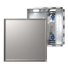strawa Wasserstation W1-VA-D,BxHxT: 246 x 246 x 94 mm, Wasserzählervorbereitung Trinkwasser kalt 3/4" Länge 80 mm, mit 2x DVGW-Kugelhahn 3/4", mit EPP-Dämmung, in Wandzarge mit Abdeckung Edelstahl