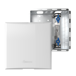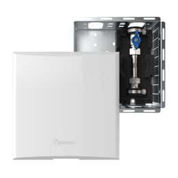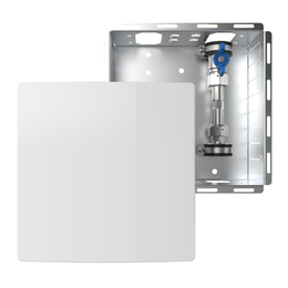 strawa Wasserstation W1,BxHxT: 250 x 250 x 94 mm, Wasserzählervorbereitung Trinkwasser kalt 3/4" Länge 80 mm, mit 2x DVGW-Kugelhahn 3/4", in Wandzarge mit Abdeckung weiß RAL 9016