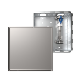 strawa Wasserstation W1-VA,BxHxT: 246 x 246 x 94 mm, Wasserzählervorbereitung Trinkwasser kalt 3/4" Länge 80 mm, mit 2x DVGW-Kugelhahn 3/4", in Wandzarge mit Abdeckung Edelstahl