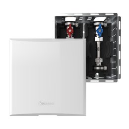 strawa Wasserstation W2-Z Typ A,BxHxT: 300 x 430 x 94 mm, Wasserzählervorbereitung Trinkwasser kalt und warm 3/4" Länge 80 mm, mit 1x DVGW-Kugelhahn 3/4", Zirkulationsventil NexusValve TW DN 15 50-60 Grad, Abdeckung weiß RAL 9016