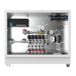 strawa Comfort Mischstation FBM-63-V-CA 10 Hkr.,BxHxT: 1032 x 710 x 125 mm, Mischg. m 3P SM mit Pumpe, vert. AG o. WMZ, Verteiler mit DFA 0-3 l/min + THV M30x1,5, Comfort-AP-Schrank in RAL 9016